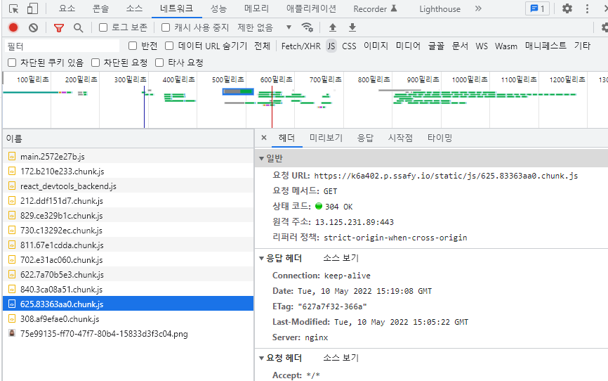 이제 우리는 큰 거대한 하나의 번들된 js를 읽어오는 것이 아니라 필요할 때마다 불러올 js가 따로 생겼습니다!